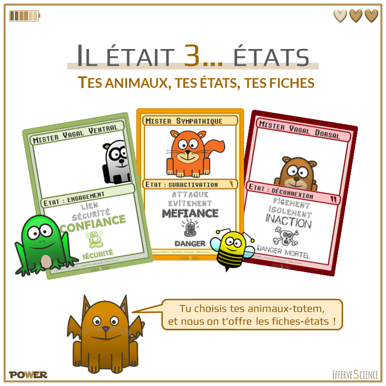 Choisis les animaux qui représentent mieux selon toi tes différents états de la Théorie PolyVagale, et pouvoir jouer entre différents animaux.