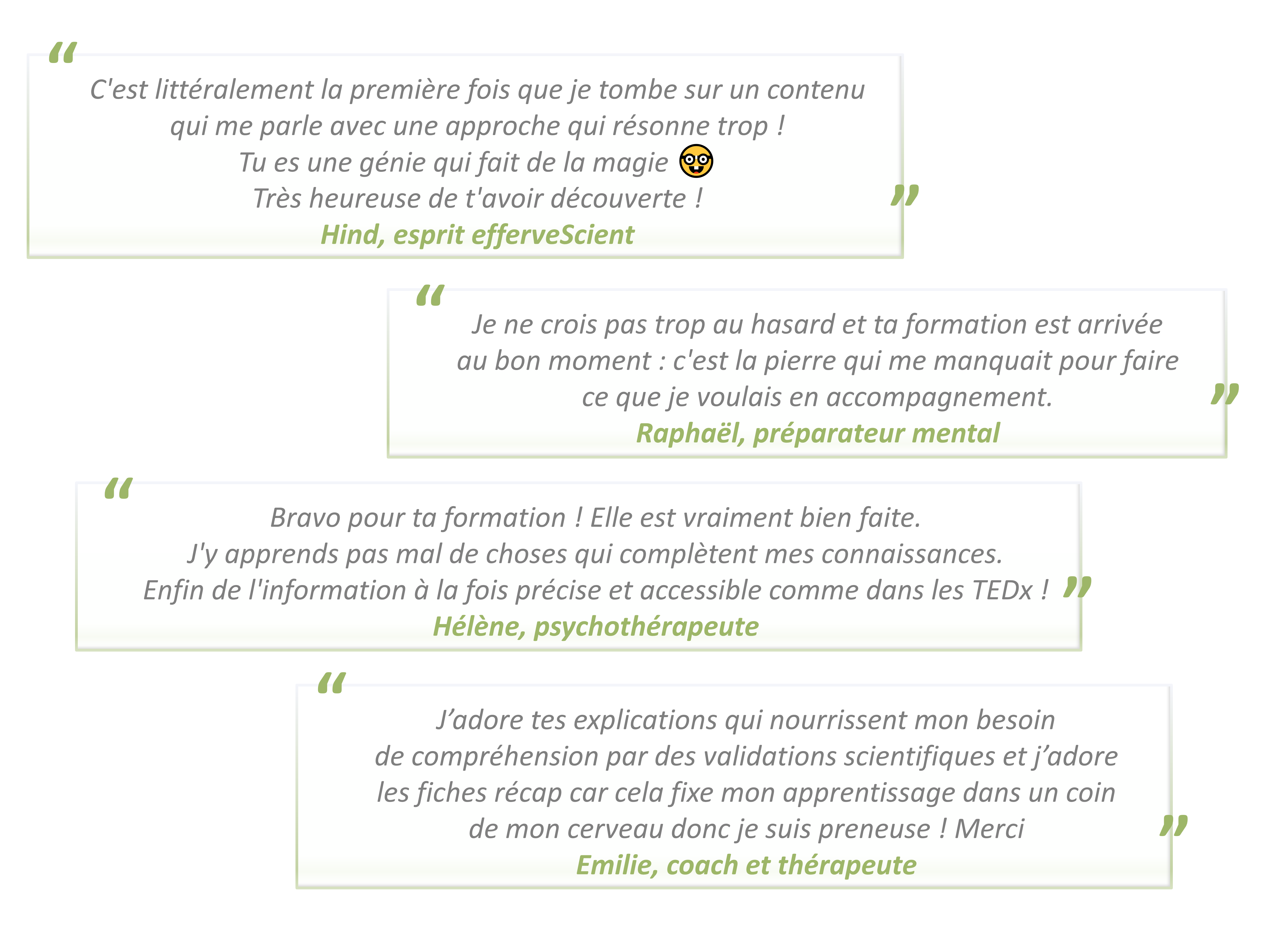 Et tout ça dans la bienveillance, et sans forcer, grâce au POWER de la neurobiologie de la confiance, ces états de la Théorie PolyVagale qui permettent de reconnecter à son corps, à sa santé, à sa sécurité :-)